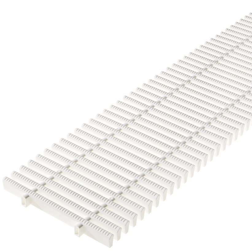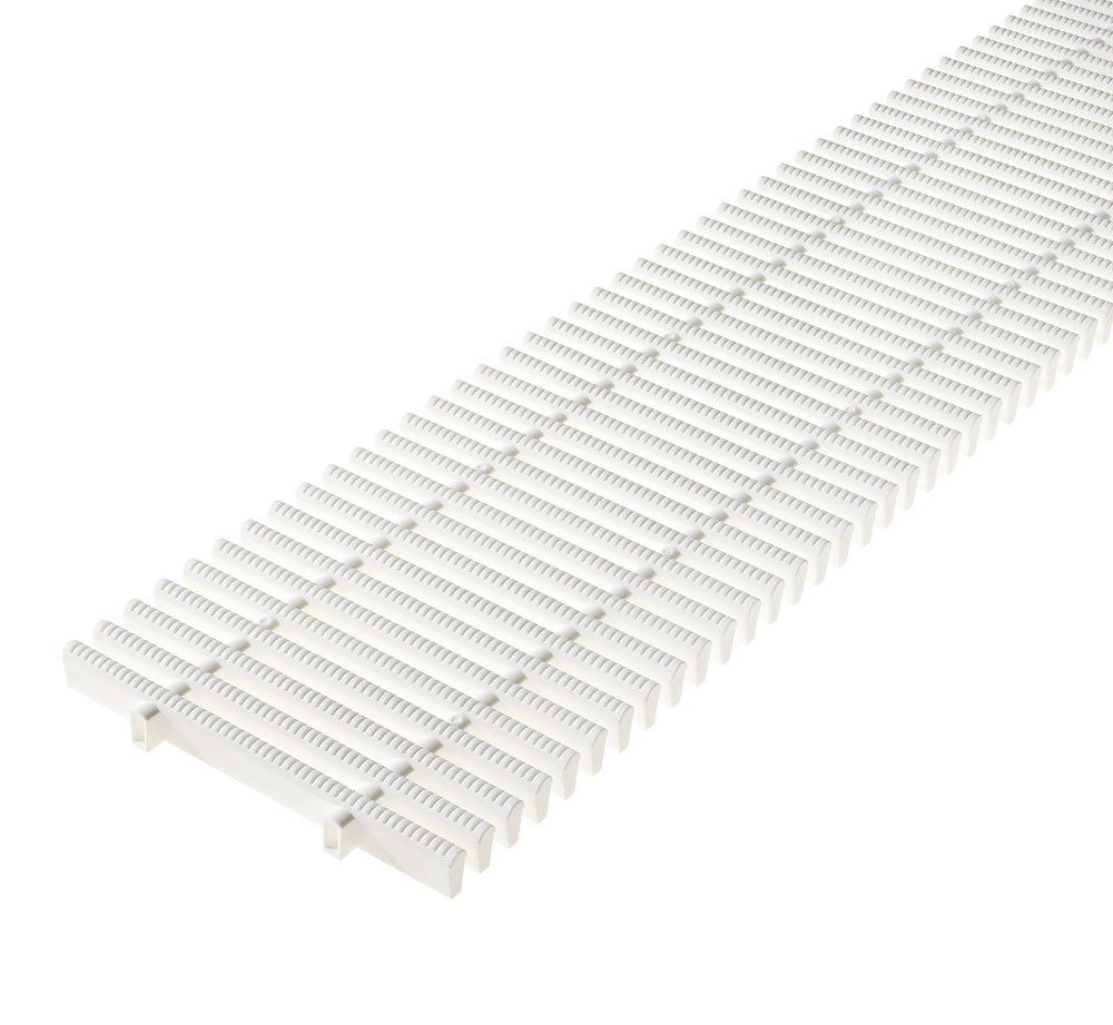 Wir verwenden einen speziellen, korrosionsbeständigen Edelstahl, der den Anforderungen im Schwimmbadbereich gerecht wird. Die Roste werden ohne jegliches Schweißen in einem speziellen Pressverfahren hergestellt, so dass mögliche Korrosion an Schweißstellen ausgeschlossen wird.
