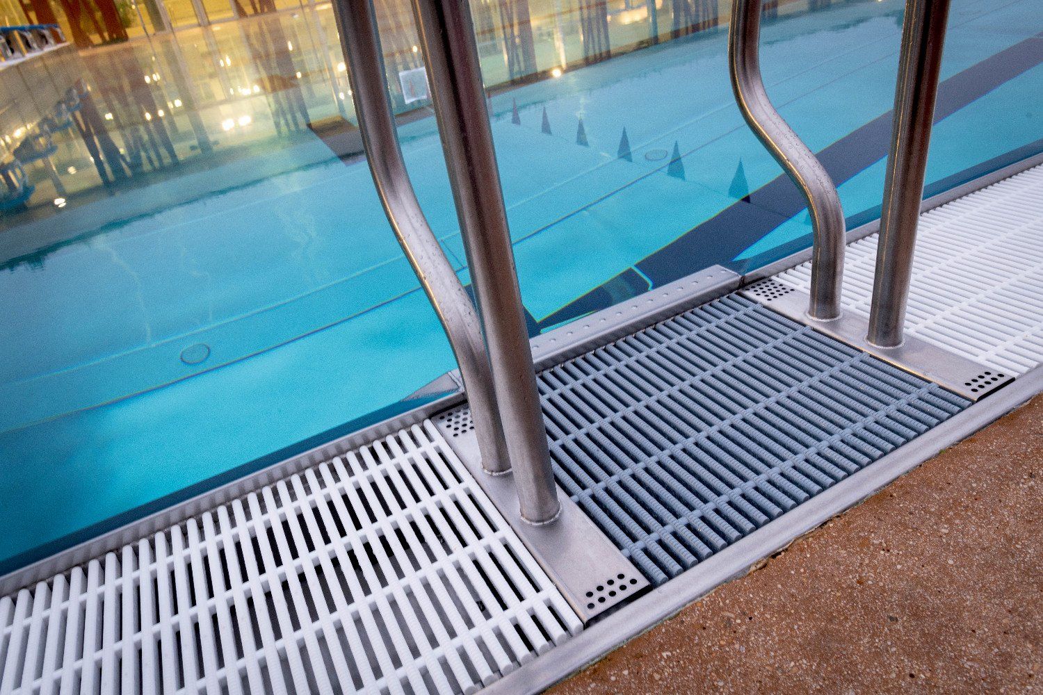 emco Schwimmbadroste werden seit über 40 Jahren erfolgreich in öffentlichen und privaten Schwimmbädern für die Abdeckung von Überlaufrinnen eingesetzt.